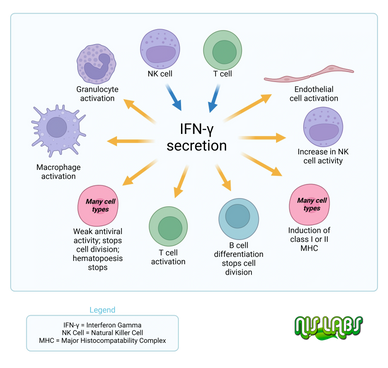 Some cytokines, such as interferon-gamma, are also anti-viral peptides. Interferon-gamma has multiple roles, including support of natural killer cell activity and inhibiting viral replication in virally infected cells.