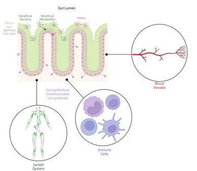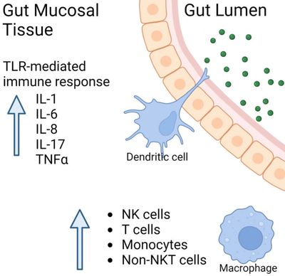 The gut mucosa is densely populated with innate immune cells. This includes dendritic cells, macrophages, natural killer cells, and gamma-delta T cells. When we consume a natural product, the dendritic cells sample the product with tentacles, while communicating with the other immune cells on the inside of the gut barrier.